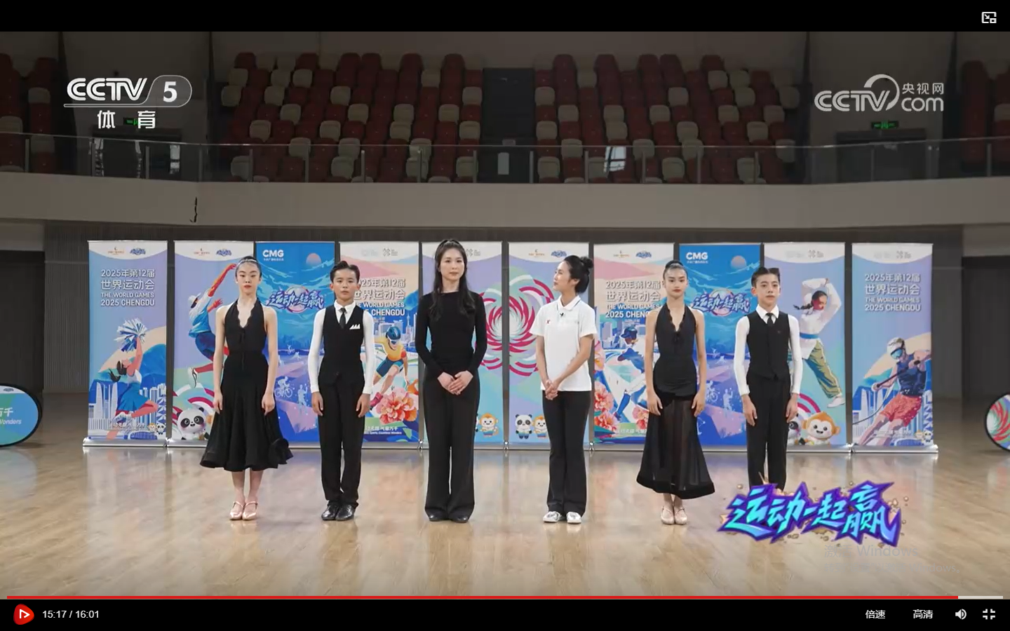 同期,张若男参与央视5套《运动一起赢》世运课堂特别节目录制,系统教学标准舞五大舞种(华尔兹、维也纳华尔兹、探戈、狐步舞、快步舞),从基本架型到经典步伐细致指导,彰显体育舞蹈艺术魅力。