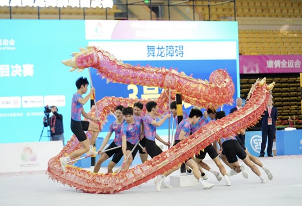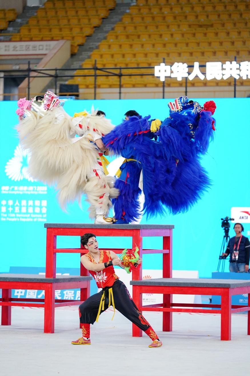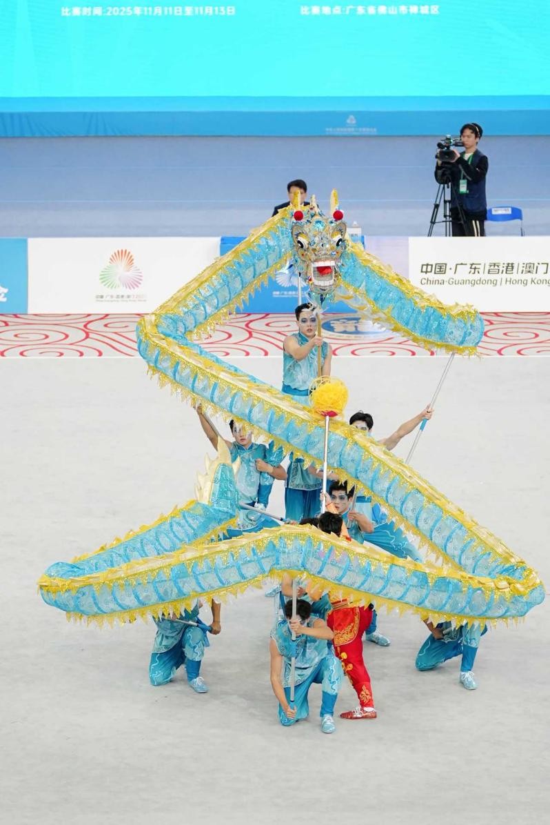 在竞争尤为激烈的舞龙障碍项目中,队员们沉着冷静,以流畅的穿障、精准的腾翻和零失误的配合,最终以1分03秒的优异成绩勇夺金牌,并创造了该项目的全国纪录。在北狮自选项目中,队员们完美演绎了《魔童伏狮》,将力与美、技与艺完美融合,一系列高难度动作赢得现场观众热烈掌声,再夺一金。