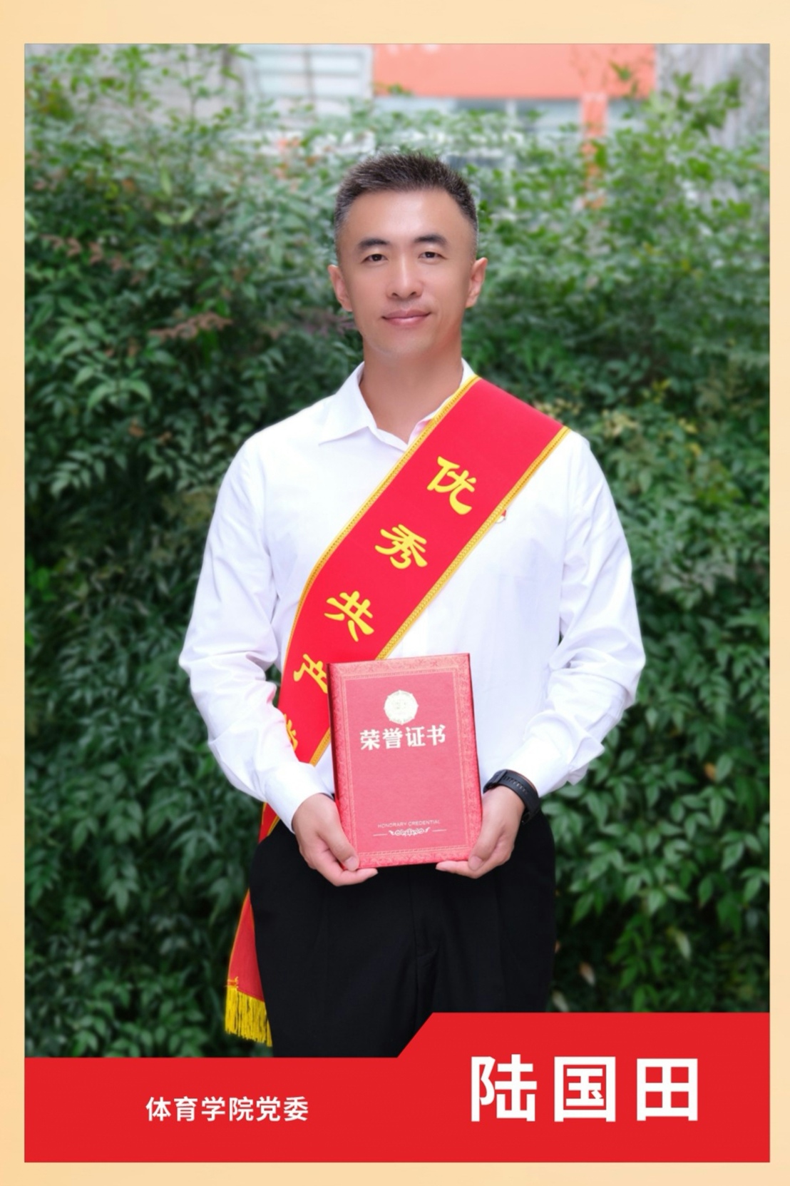 陆国田同志,现任体育学院教工第一党支部书记。该同志始终以党员标准严格要求自己,坚持用习近平新时代中国特色社会主义思想武装头脑,认真履行党员义务,在教学工作和支部建设中兢兢业业,勇于担当。