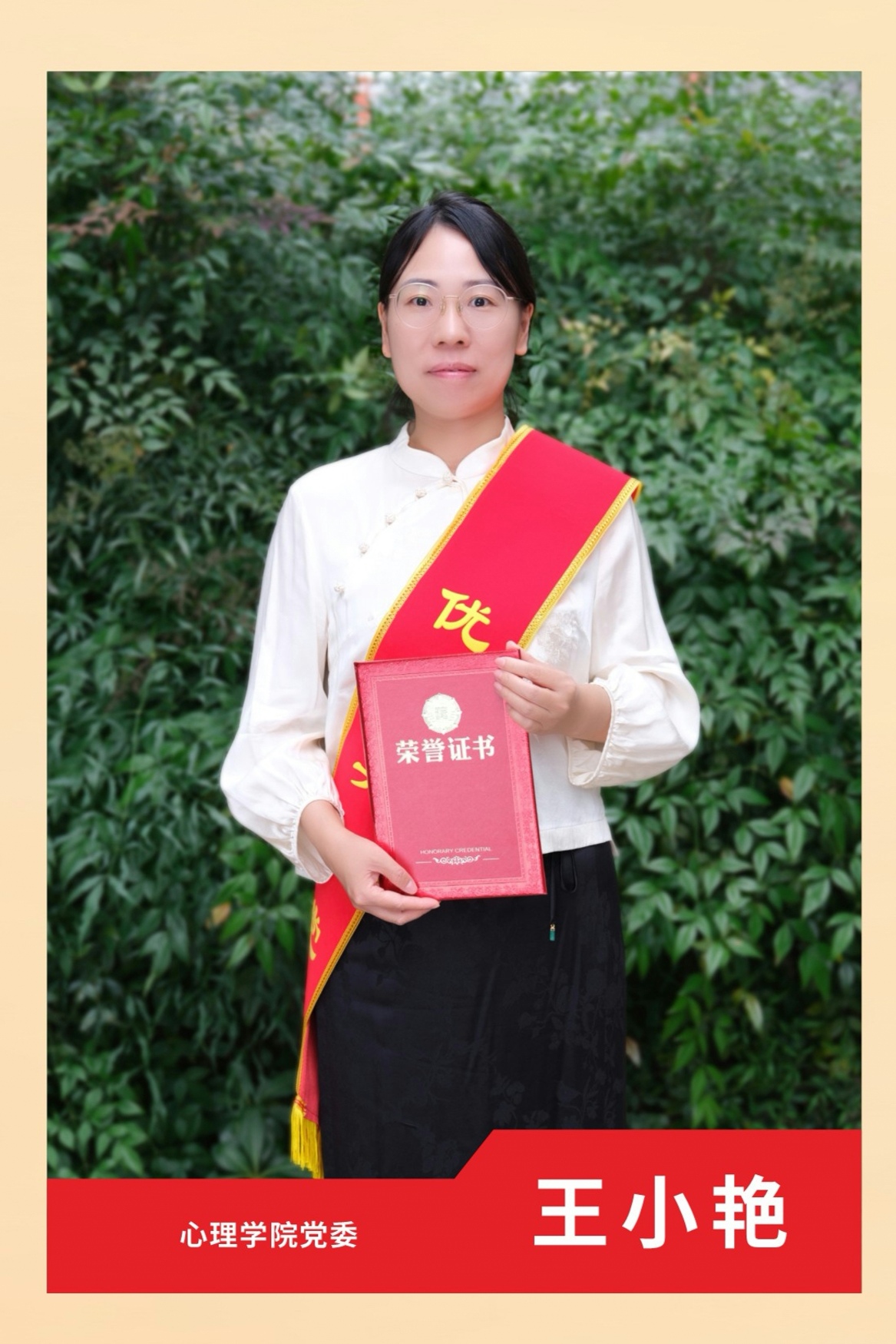 王小艳同志,系心理学院副教授、硕士生导师。自2018年入职以来,她始终坚持以习近平新时代中国特色社会主义思想为指导,恪守教师职业道德,勤勉敬业,在教书育人、科研创新等方面发挥党员先锋模范作用。