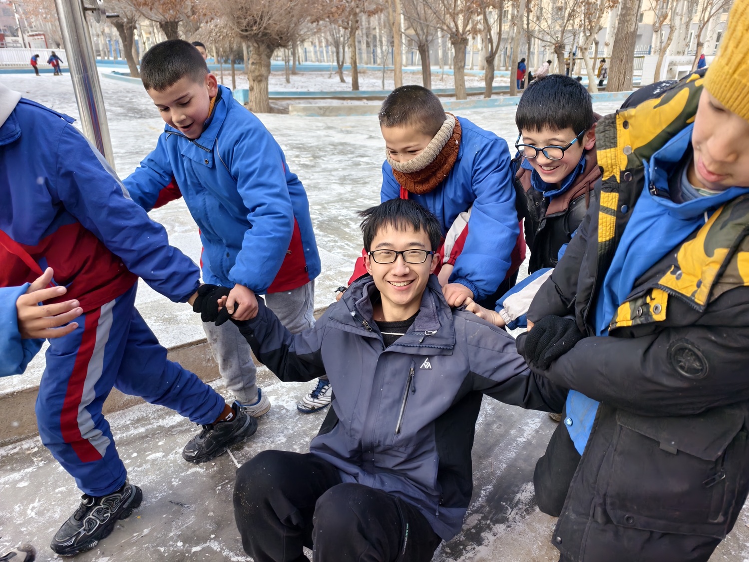 为了拉近距离,游俊坚持记住并准确叫出每个学生的名字——这个看似微小的举动,却让学生们倍感尊重。渐渐地,学生们也开始亲近他、听他的话,跟他一起玩耍,主动跟他分享。下大雪的时候,他们一起在雪地里撒野、拍照;周末一起在学校踢球。学生在教师节送上的苹果、儿童节分享的零食,那些纯真的心意,是游俊珍藏心底的温暖回馈。