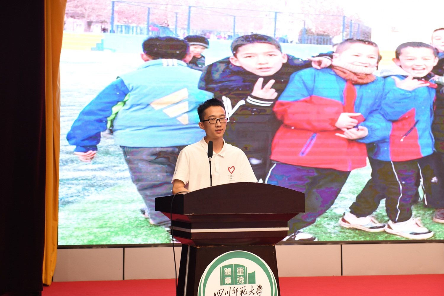 游俊在学校西部计划志愿者出征仪式上发言