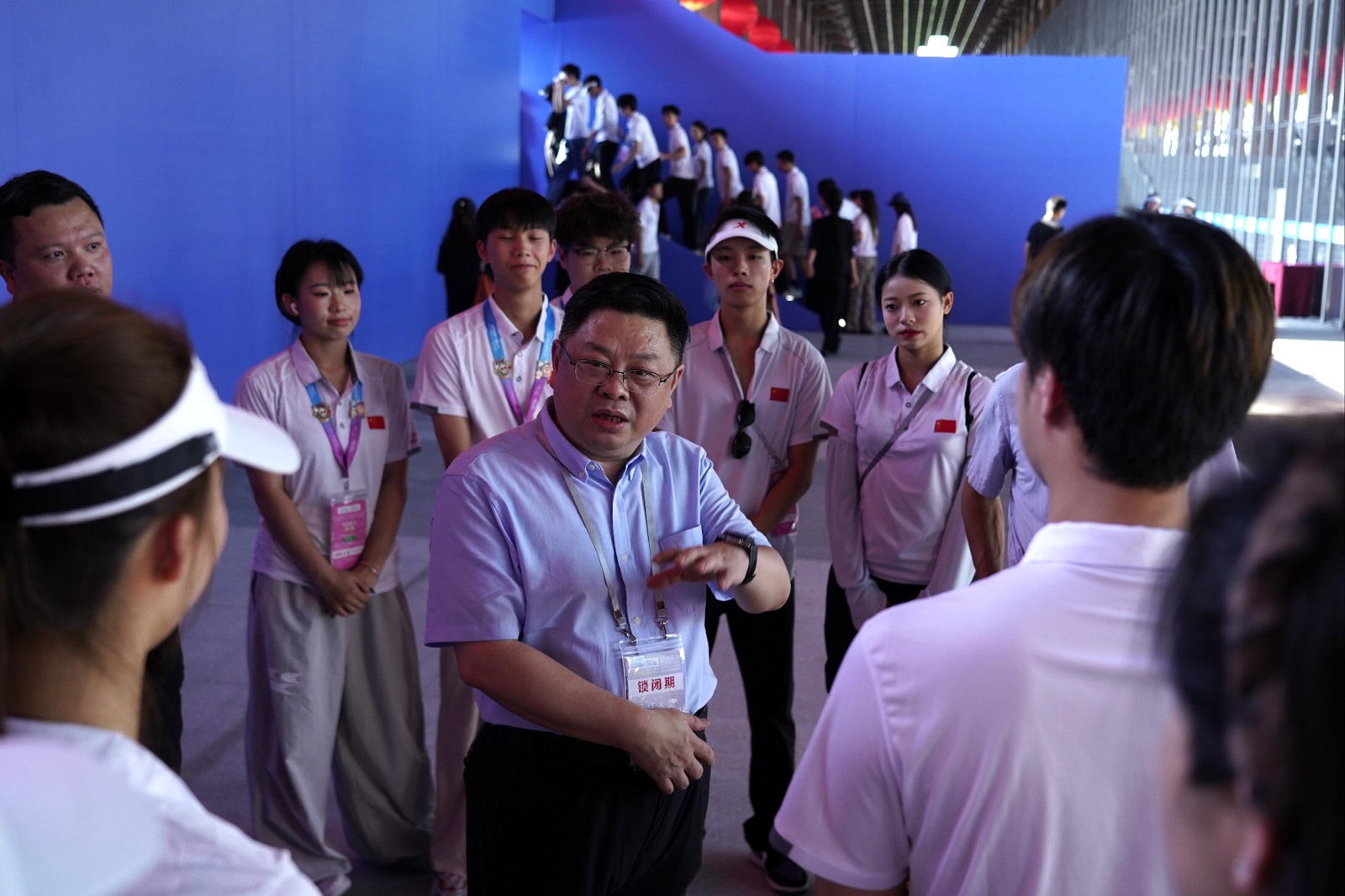7月21日,郭勇一行深入志愿者宿舍,与同学们亲切交流,详细了解其服务场馆、岗位类别、培训演练、饮食居住及志愿服务经历等情况。郭勇充分肯定了志愿者们展现出的良好精神面貌,强调参与世运会意义重大,勉励大家珍惜实践锻炼机会,认真参加培训学习,在服务中学以致用、积极实践、积累经验,做到“以专业赋能实践,以服务锤炼能力”,以一流服务和饱满精神安全、充实、高效完成各项任务,展现川师学子的青春风采与使命担当。