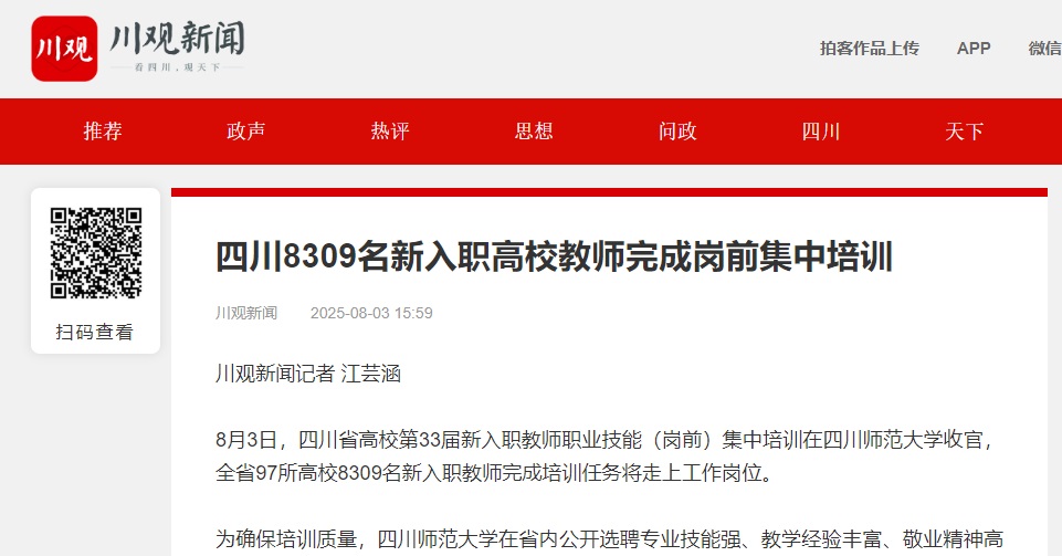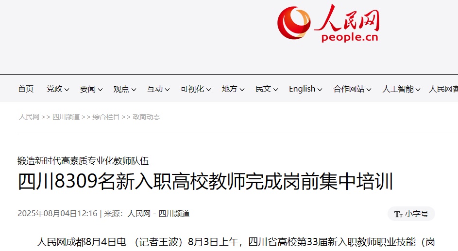 人民网:锻造新时代高素质专业化教师队伍 四川8309名新入职高校教师完成岗前集中培训