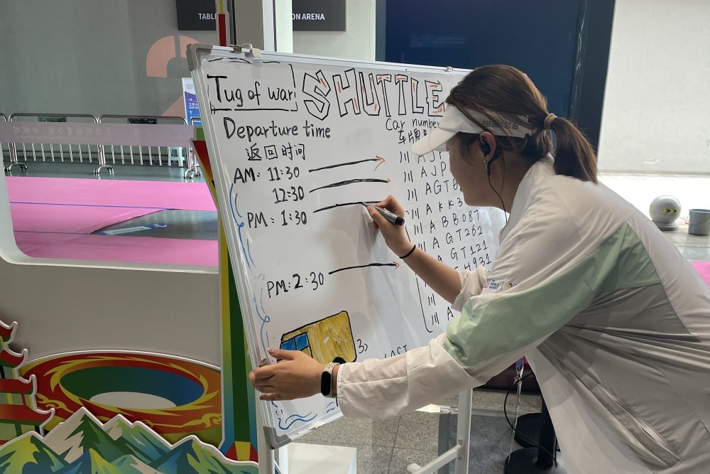“作为一名体育专业的学生,能深度参与国际赛事、近距离接触各国运动员,是特别难得的机会。”李冰冰说。2023年,她曾参与大运会的志愿服务工作,那段美好的回忆让她再次选择加入世运会的志愿服务。“上次的经历让我受益匪浅,今年我又来了!”