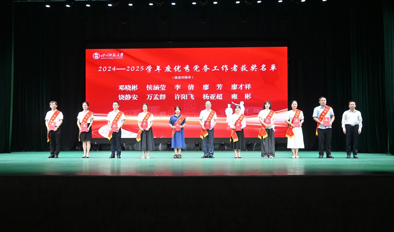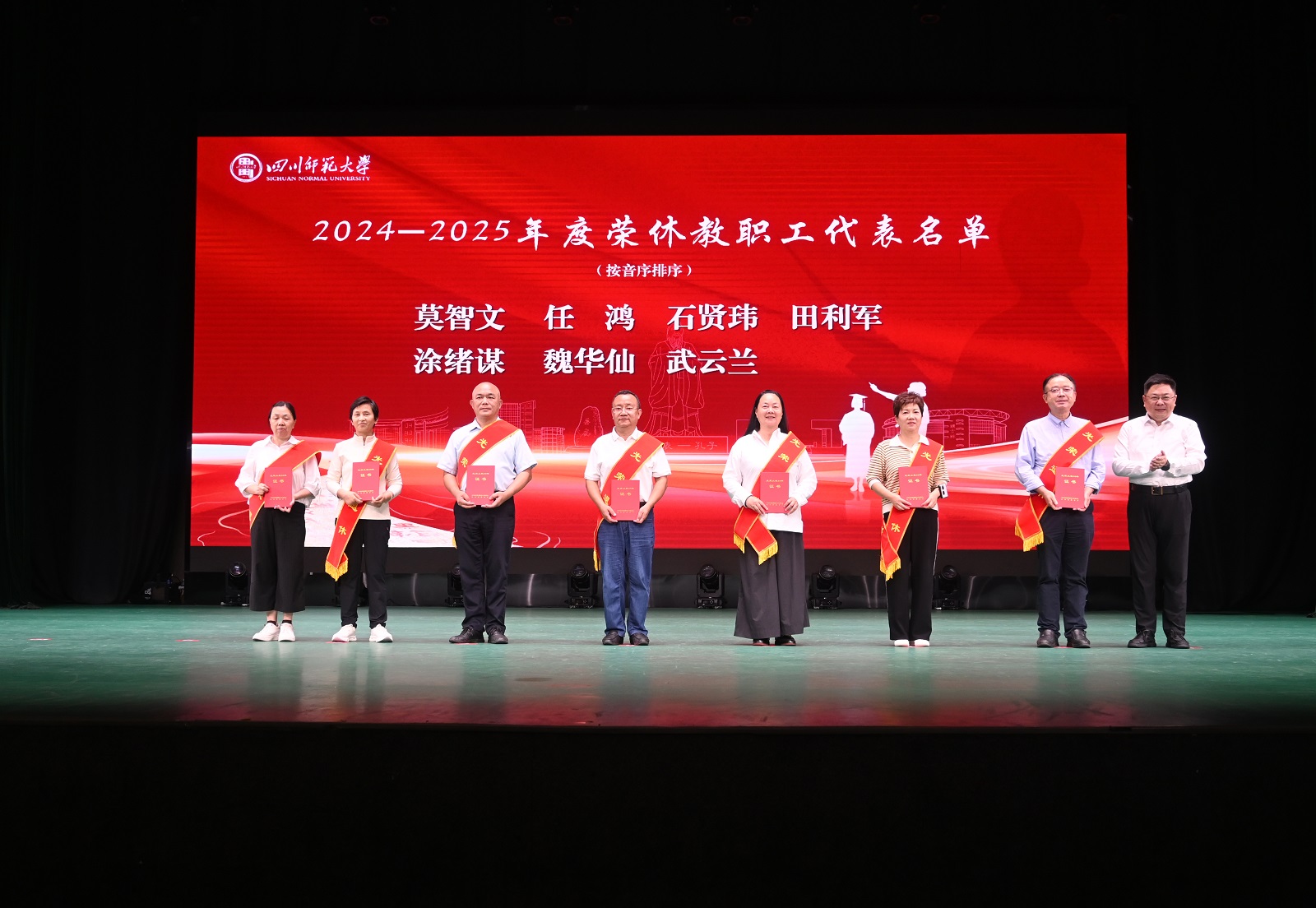 校党委书记郭勇在讲话中代表学校向全校教职员工以及为学校发展作出重要贡献的离退休老同志致以节日的问候和美好的祝愿,向受到表彰的先进集体和个人表示热烈祝贺。他指出,过去的一年,全校教职工深入学习贯彻习近平总书记关于教育的重要论述,全面落实立德树人根本任务,凝心聚力推动高质量发展,在多个方面取得了显著成绩。学校持续完善教师思想政治工作体系,成立教师工作委员会,加强对青年教师的培养与支持,着力打造高素质专业教师队伍,涌现出一批教书育人楷模。学科专业建设取得新进展,人才培养取得新成效,科学研究取得新进展,办学实效和社会影响力持续提升。他希望全体教职工,一是牢记育人初心使命,做学生成长成才的筑梦者;二是勇攀科学研究高峰,做科技自立自强的开拓者;三是聚焦国家战略需求,做中国式现代化建设的推动者;四是投身学校改革发展,做一流师范大学建设的奋斗者。在教育强国建设的新征程上,学校始终将教师队伍视为立教之本、兴校之基,大力营造尊师重教、育才赋能的浓厚氛围,持续完善支持教师发展、激励教学创新的体制机制,努力为每一位教师投身强国伟业搭建广阔舞台、提供坚实保障。全校各单位要进一步增强管理服务的精细化和精准化水平,把“以师生为中心”的理念落实到具体行动中,体现在每一件实事小事上。要更加充分发挥老同志、老专家的传帮带作用,更加关心中青年教师的成长发展,更多关注教职员工的家业、学业与事业,主动为大家铺路搭桥、添薪助力,支持每一位教师在勇立潮头、臻于至善的实践中实现人生价值,与学校同心同行、共同成长,一道为中国式现代化四川新篇章贡献川师智慧和力量。