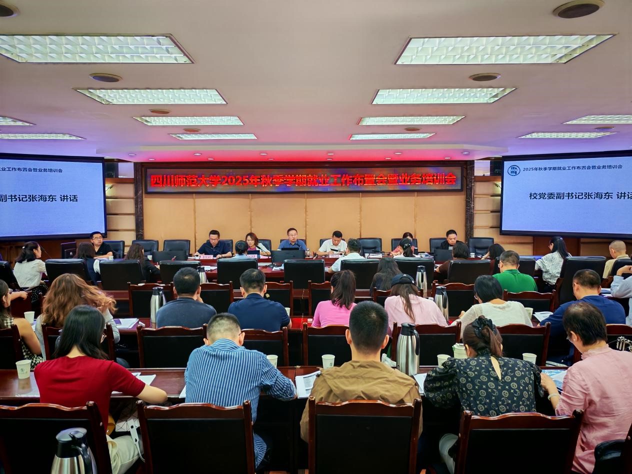 为深入贯彻落实党中央、国务院关于高校毕业生就业工作的决策部署,系统推进2026届毕业生就业工作提质增效,9月19日上午,学校在狮子山校区七教A区六楼会议室召开2025年秋季学期就业工作布置会暨业务培训会。校党委副书记张海东出席会议并讲话,党委学生工作部(武装部)、党委研究生工作部、招生就业处、遂宁校区综合管理委员会主要负责人,各学院党委副书记、2026届毕业生辅导员及就业工作人员参会。会议由招生就业处副处长田伟主持。