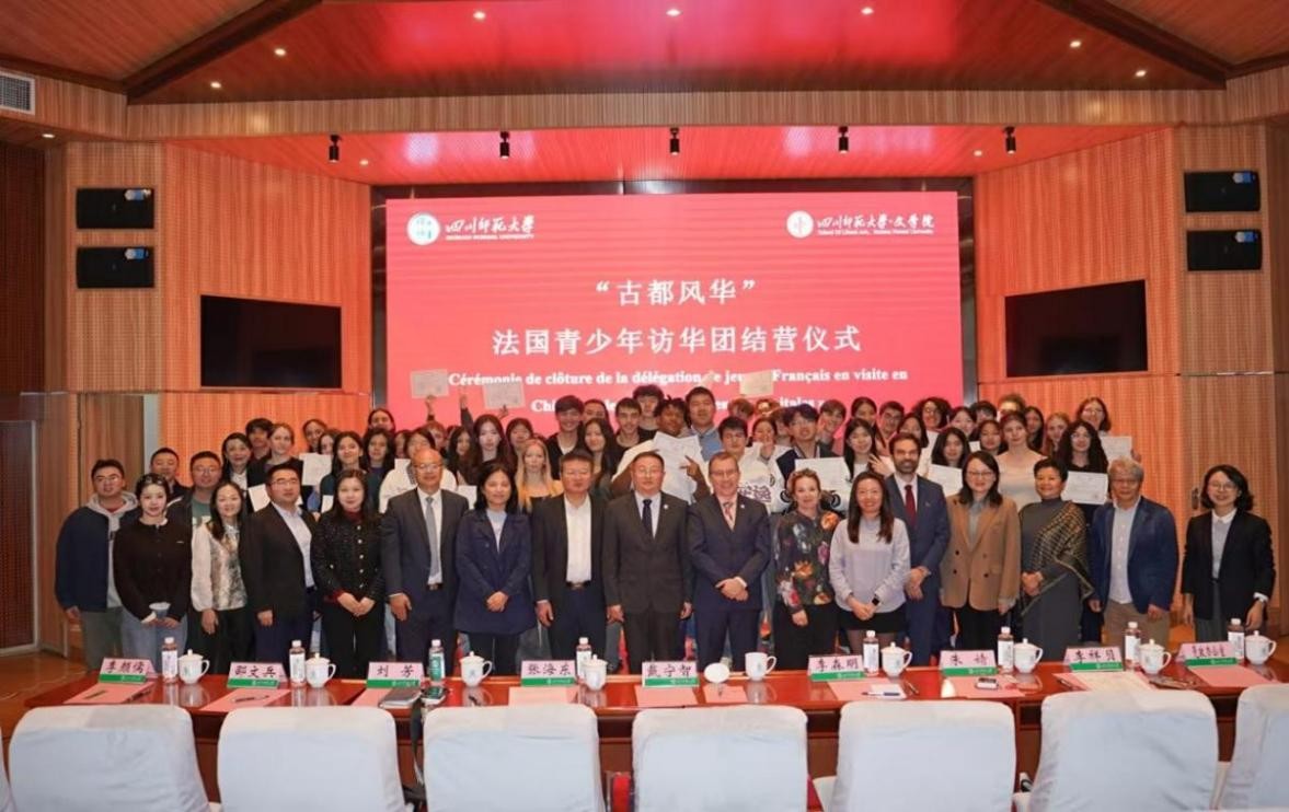 10月28日,由教育部中外语言交流合作中心主办、我校文学院承办的“汉语桥”2025“古都风华”法国青少年访华团顺利结营,结营仪式在学校狮子山校区七教B区105会议室举行。法国驻成都总领馆总领事戴宁智、校党委副书记张海东出席仪式,法国驻成都领馆相关官员,学校相关单位负责人,50余名法国访华团师生及中方志愿者代表等参加仪式。仪式由文学院院长毛娟主持。