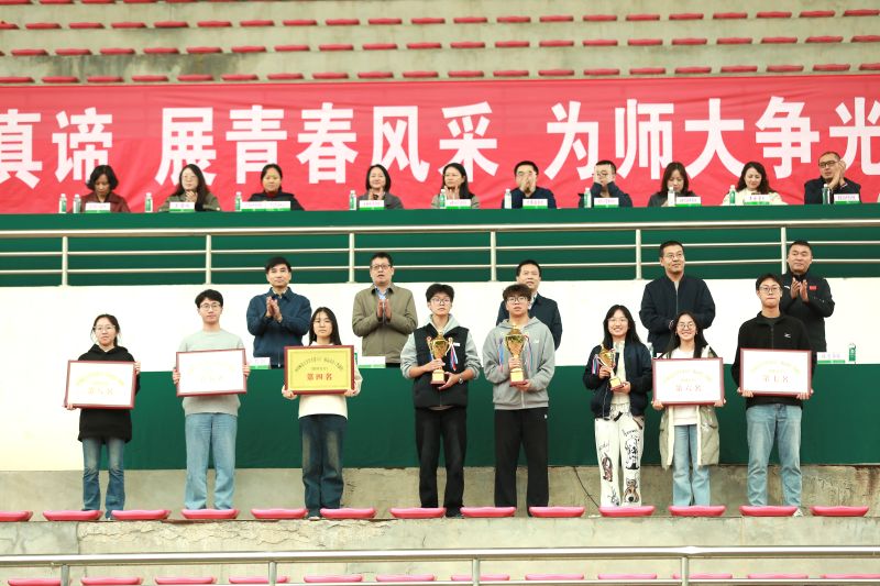 11月7日举行了运动会闭幕式,滕文浩、郭朝辉和遂宁校区党委常务副书记饶显周、综管委副主任谭英分别为三校区获奖团体颁奖。后勤保障部夺得教工团体总分第一名,数学科学学院、计算机科学学院、机关工会1组、图书与档案信息中心、机关工会2组、地理与资源科学学院、教育科学学院分获团体总分第二至第八名。数学科学学院2队夺得狮子山校区学生团体总分第一名,数学科学学院1队、化学与材料科学学院1队、法学院、文学院2队、教育与科学学院1队、文学院1队、历史文化与旅游学院分别获得狮子山校区学生团体总分第二至第八名。外国语学院夺得成龙校区学生团体总分第一名,物理与电子工程学院2队、地理与资源科学学院、工学院、生命科学学院1队、物理与电子工程学院1队、经济与管理学院1队分别获得成龙校区学生团体总分第二至第八名。数学与应用数学系获得遂宁校区体育道德风尚奖,科学教育系获得优秀组织奖;电商2队、公管1队、物理队分获遂宁校区阳光组团体总分一、二、三名;24级穗雅体教队、23级穗雅体教队、25级穗雅体教队分获遂宁校区专业组团体总分一、二、三名。