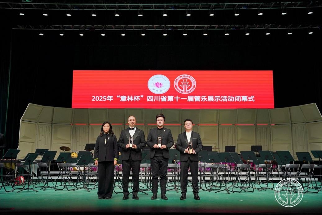 日前,2025年“意林杯”四川省第十一届管乐展示活动在我校成龙校区龙湖剧场举行。四川省教育厅副厅长蔡光洁,我校校长赵国华,校党委常委、副校长何诣然出席开幕式与闭幕式,为获奖代表颁奖。我校音乐学院管乐团表现出色,荣获大学生组一等奖,是我校首次在该赛事中获得最高奖项,赢得评审专家高度认可。