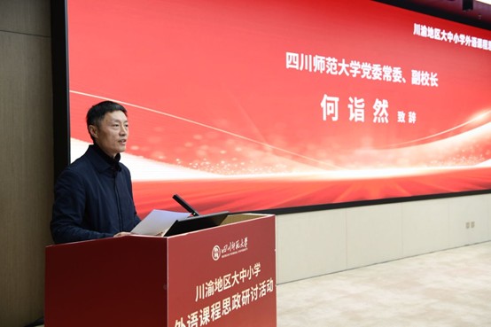 12月6日至7日,由我校外国语学院、四川省教育科学研究院、重庆市教育科学研究院联合主办的川渝地区大中小学外语课程思政研讨活动在成都举行。校党委常委、副校长何诣然,四川省教育科学研究院副院长董洪丹出席开幕式并致辞。来自川渝两地的大中小学外语教学专家、教研员及一线教师代表参会。开幕式由我校外国语学院院长曹曦颖主持。