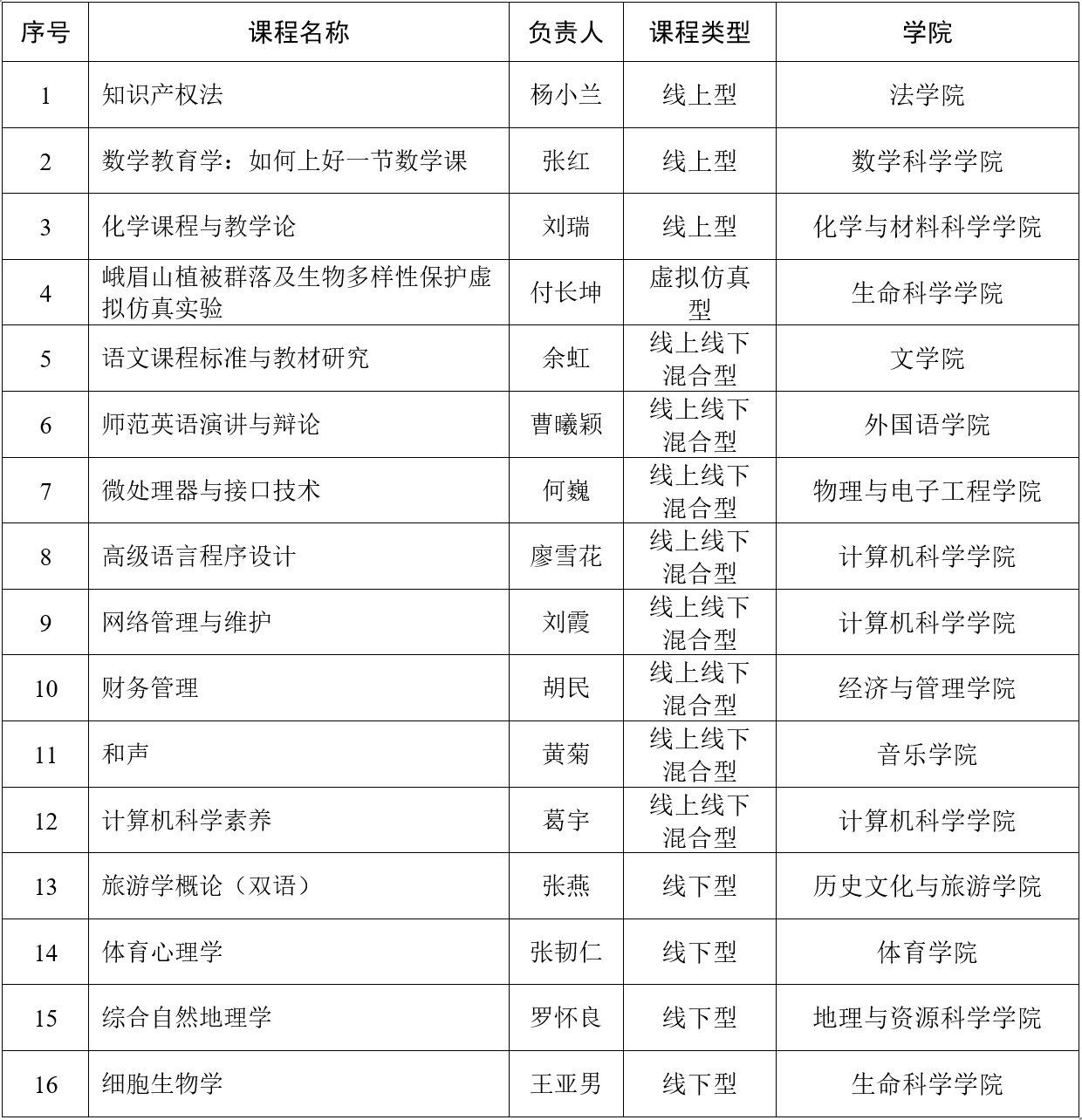 日前,教育部公布第三批国家级一流本科课程认定结果,全国共有5994门课程获认定,涵盖线上课程、虚拟仿真实验教学课程、线下课程、线上线下混合式课程、社会实践课程5大类。我校《化学课程与教学论》等16门课程成功获评,包括线上型3门、线下型4门、线上线下混合型8门、虚拟仿真型1门。此次获评使我校国家级一流本科课程累计达到38门,总数稳居四川省属高校首位。在本批次认定中,我校获评课程数量位列四川省所有高校并列第3名、全国师范类高校并列第9名、地方师范类高校第4名,课程建设成效显著。