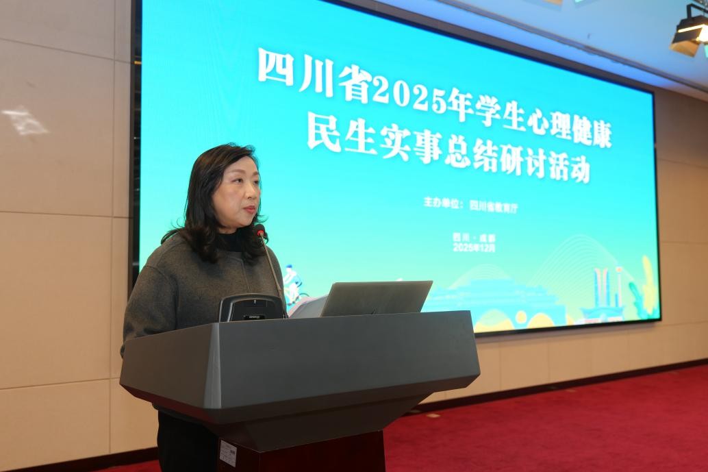 近日,四川省2025年学生心理健康民生实事总结研讨活动在我校举行。教育厅副厅长蔡光洁出席活动并讲话,副校长陈佑松出席活动。教育厅相关处室、我校相关职能部门、四川省学生心理健康工作咨询委员会、北京师范大学科技集团心理健康中心相关负责人,以及各市(州)、县(区)教育部门与心理服务分支机构代表共170余人齐聚一堂,共同总结县域学生心理辅导中心建设成果,并就深化学生心理健康工作展开研讨。活动由教育厅体卫艺处处长唐克红和四川学生心理健康教育研究中心副主任、脑与心理科学研究院二级教授雷怡主持。