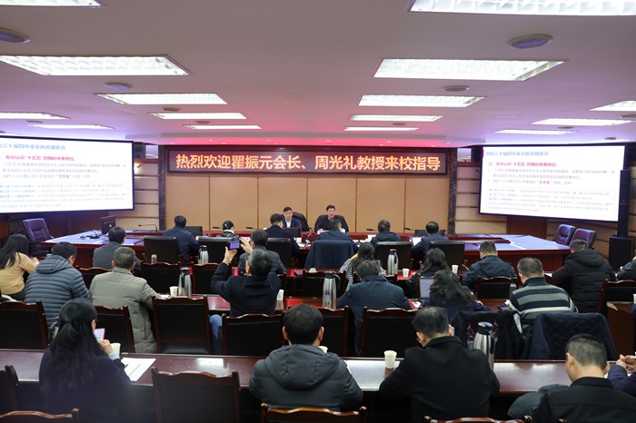 为科学谋划学校长远发展,高质量推进“十五五”规划编制工作,近日,学校举行高等教育发展战略专题报告暨“十五五”规划编制工作专题指导会,会议特邀中国高等教育学会原会长瞿振元和中国人民大学教育学院院长周光礼作专题辅导报告。全体在校校领导、各专项工作组牵头单位负责人及联络员、各学院党政主要负责人、发展规划与学科建设处全体人员参加会议。会议由校长赵国华主持。