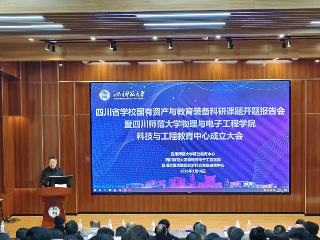 1月15日,四川省学校国有资产与教育装备科研课题开题报告会暨物理与电子工程学院科技与工程教育中心成立大会在我校举办。校党委副书记、纪委书记滕文浩出席会议并致辞,物理与电子工程学院党委书记廖磊主持会议。