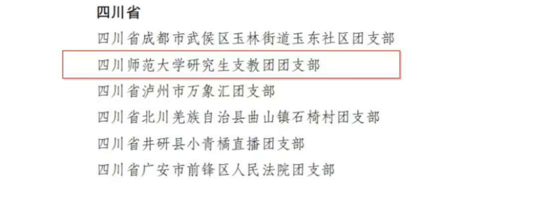 近日,共青团中央公布了2025年全国五四红旗团委(团支部)等表彰名单。我校研究生支教团团支部荣获“全国五四红旗团支部”称号,成为本年度全国高校研究生支教团中仅有的两个获奖集体之一,也是四川省高校研究生支教团中唯一获此殊荣的团支部。