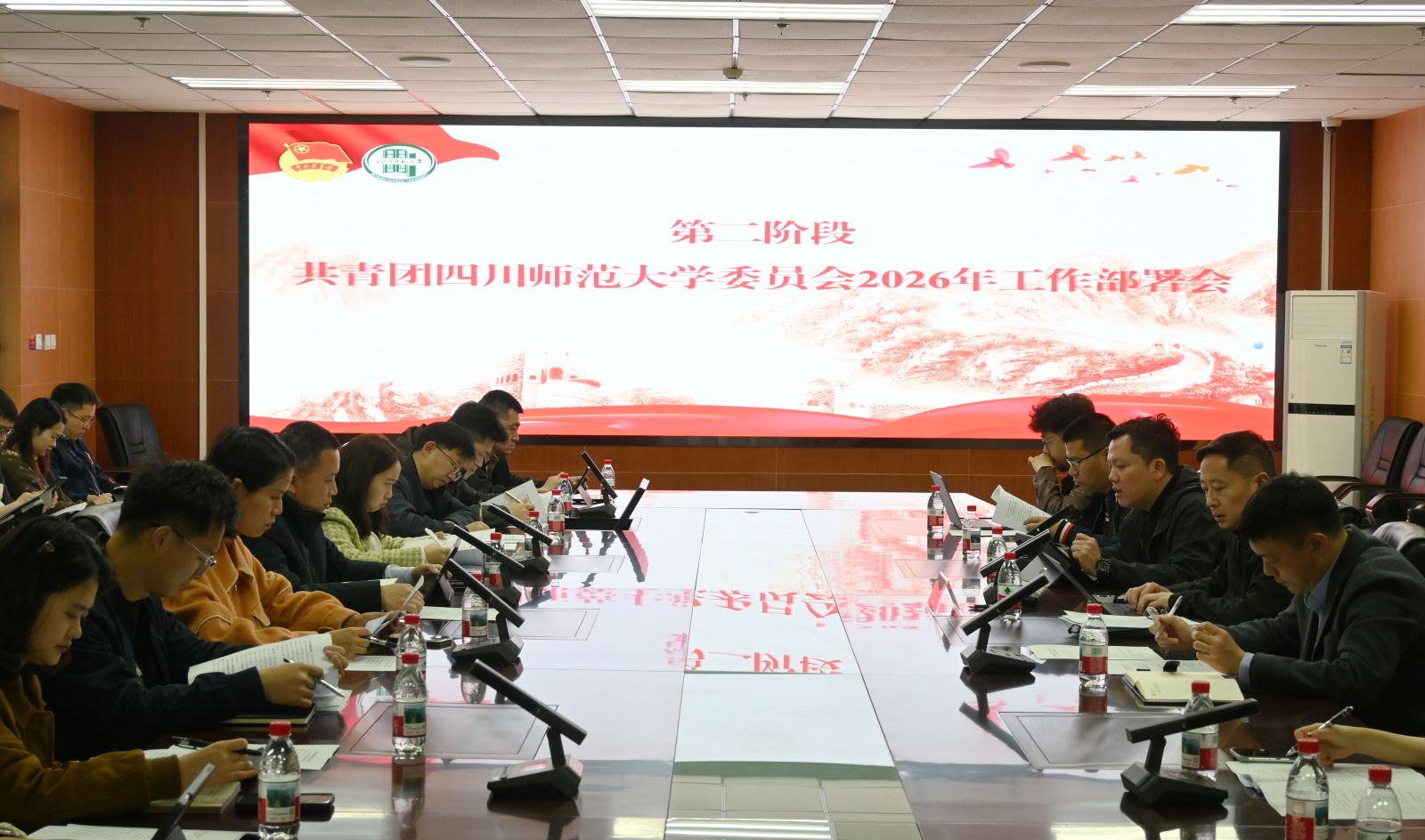 会议分两个阶段进行。第一阶段举行了共青团四川师范大学七届六次全委(扩大)会。与会委员审议并通过了《共青团四川师范大学委员会2026年工作要点》。大家一致认为,工作要点紧扣时代主题、贴合学校实际,目标明确、任务具体、措施有力,为全年共青团工作划定了“路线图”和“施工表”。会议号召全校各级团组织迅速行动,对标对表抓落实,确保年度各项任务高质高效推进。