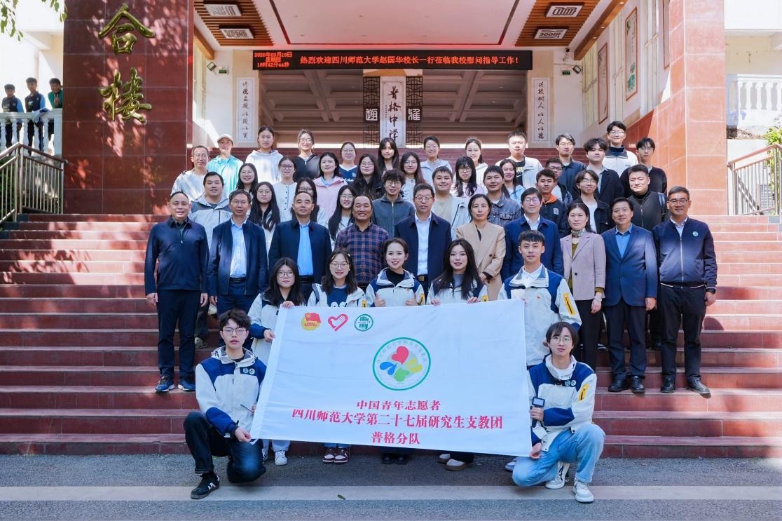 在普格县中学校,学校一行看望慰问了顶岗实习学生和研究生支教团成员,听取带队教师和学生代表的工作汇报,充分肯定同学们扎根基层的责任担当。赵国华勉励大家将专业知识与教学实践深度融合,在服务基层教育中锤炼本领、增长才干,并表示学校将始终作为坚强后盾为同学们保驾护航。