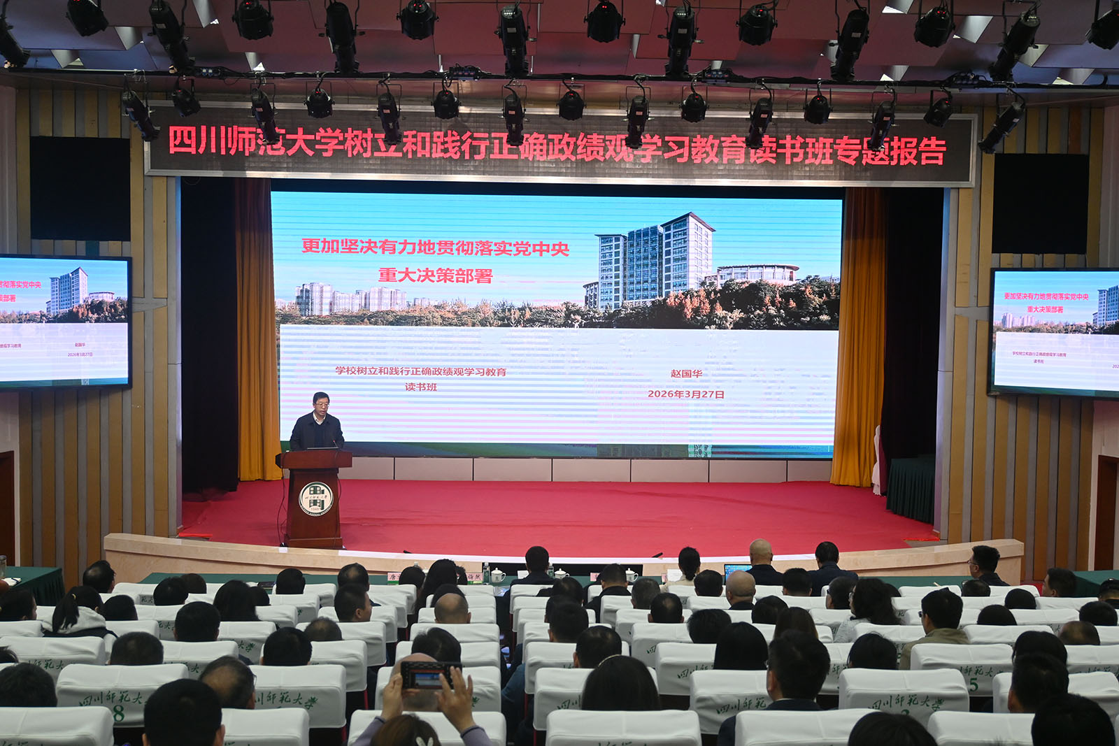 郭朝辉在主持讲话中指出,赵校长的专题报告政治站位高、理论分量足、现实针对性强,既讲清了正确政绩观的核心要义,也进一步明晰了学校贯彻落实中央和省委决策部署的着力重点和实践路径。她要求全体干部认真消化吸收报告内容,紧密联系本单位本岗位实际,进一步把职责摆进去、把工作摆进去,切实把学习成果转化为推动工作的实际成效。