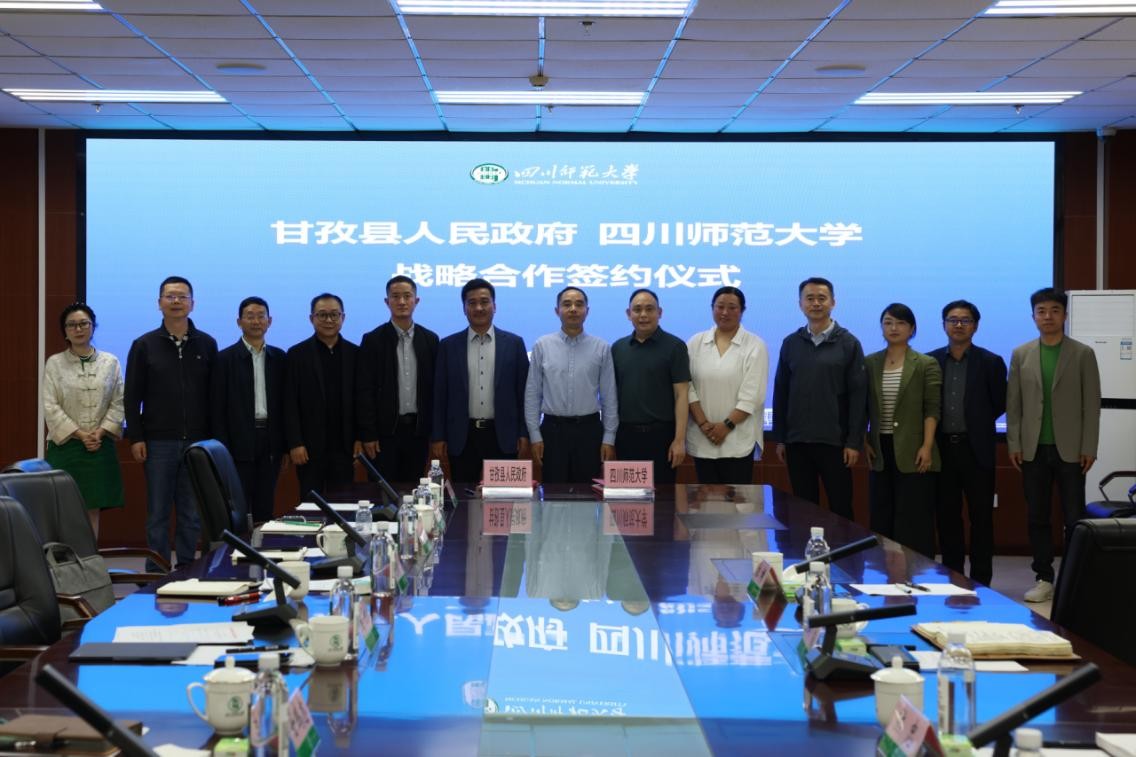 在与会人员的共同见证下,康胜与其太分别代表四川师范大学、甘孜县人民政府签署战略合作协议。根据协议,双方将围绕教育振兴、文旅赋能、科技兴农、团结铸魂、系统支撑、人才共享六大领域开展深度合作,携手谱写校地共建新篇章,为教育强国建设和中国式现代化四川实践贡献师大力量。