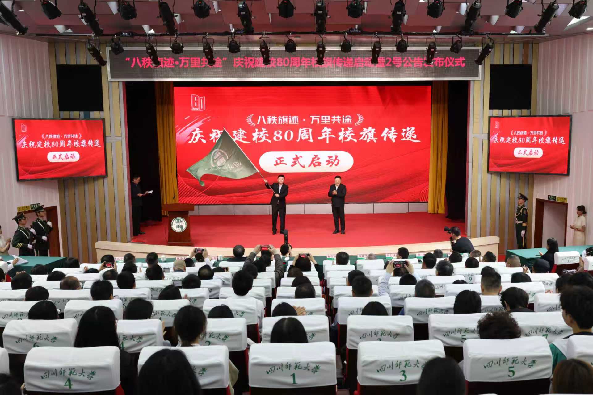 4月16日上午,在80周年华诞倒计时一个月之际,学校在狮子山校区学术报告厅举行“八秩旗迹·万里同途”庆祝建校80周年校旗传递启动暨2号公告发布仪式。校党委书记郭勇,校长赵国华,校党委副书记、纪委书记滕文浩,校党委常委、副校长康胜,学校原党委书记杨伯安、高林远,原党委副书记傅昭中,原副校长祁晓玲等老领导出席仪式。成都校友服务站会长陶振华,上海校友服务站名誉会长黄胜、会长张建桦等校友代表,以及各学院、各部门负责人、师生代表参加。仪式由校党委副书记张海东主持。