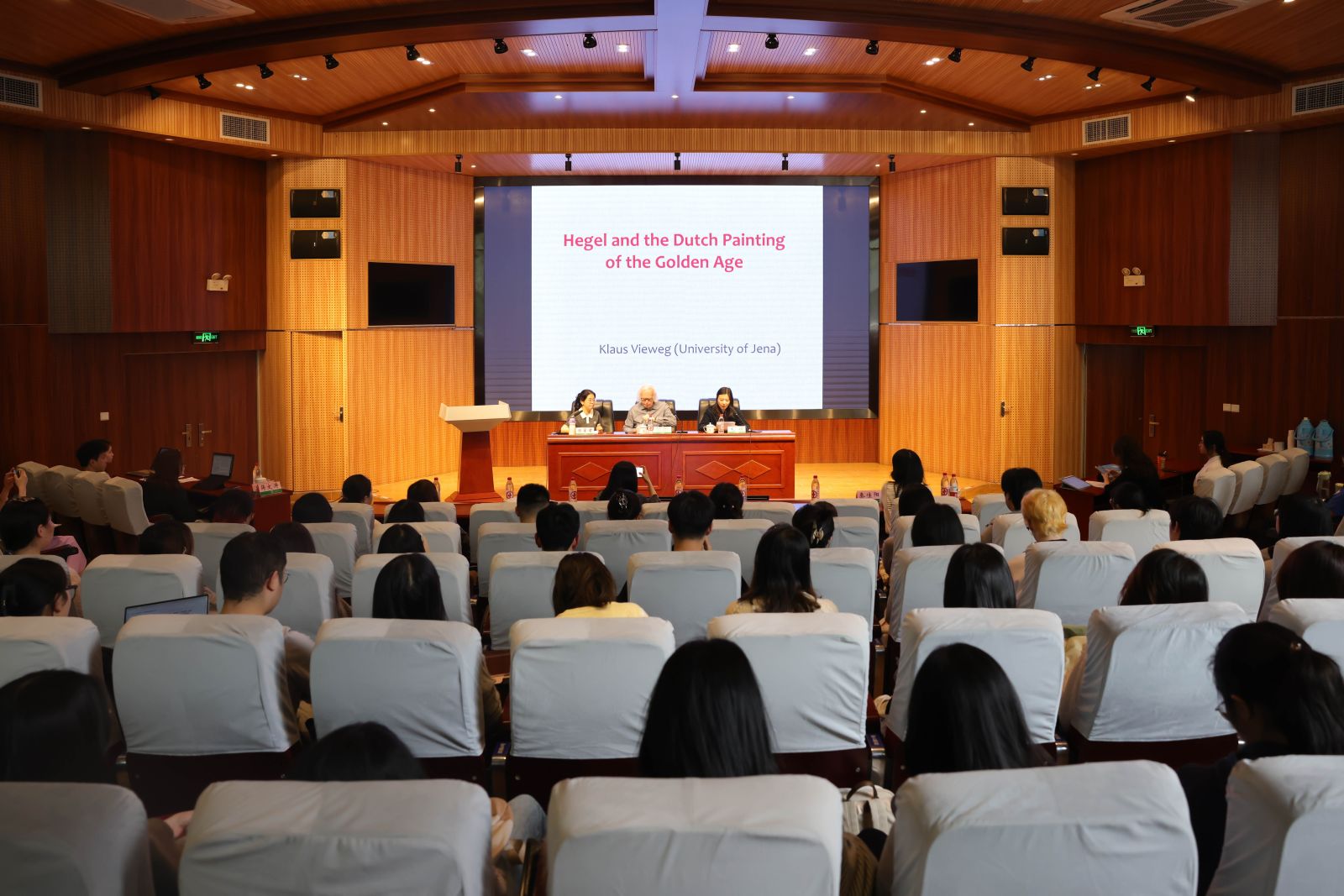 费维克教授以《黑格尔的绘画美学》为题,从黑格尔艺术哲学体系出发,深入阐释了绘画作为浪漫型艺术的独特定位,分析了绘画如何超越物质束缚、转向心灵表达,并揭示了绘画在连接造型艺术与音调艺术、推动艺术精神化进程中的重要作用。报告兼具哲学深度与艺术视野,为现场师生带来一场高水平的思想盛宴。