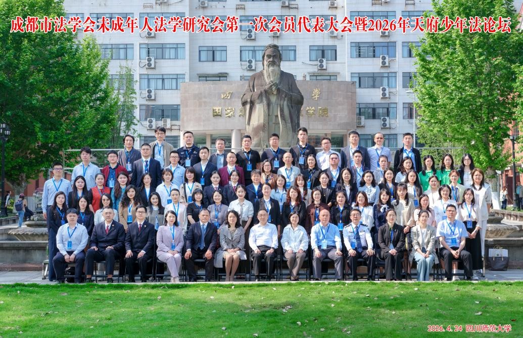 4月24日,由我校承办的成都市法学会未成年人法学研究会第一次会员代表大会暨2026年天府少年法论坛在狮子山校区学术报告厅举行。四川省政协社会法制委副主任、省法学会副会长郭彦,校党委副书记、纪委书记滕文浩,成都市法学会专职副会长刘巍,成都市锦江区区委常委、政法委书记、法学会会长刘刚毅出席会议。来自成都市、区政法机关、大中小学、律师事务所及社会组织的100余位嘉宾和会员代表参加会议,共同探讨未成年人法学研究理论与实务问题。大会开幕式由我校法学院副院长苏镜祥主持。