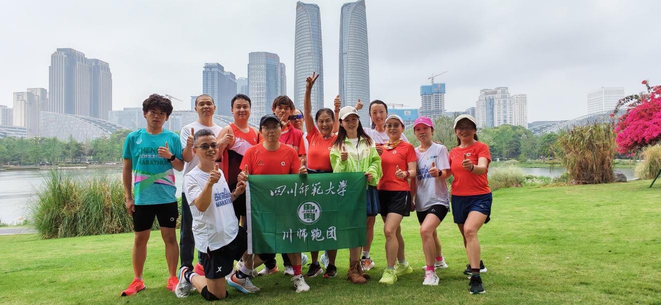 参加川师80周年校庆校旗传递的部分川师跑团成员交子公园合影