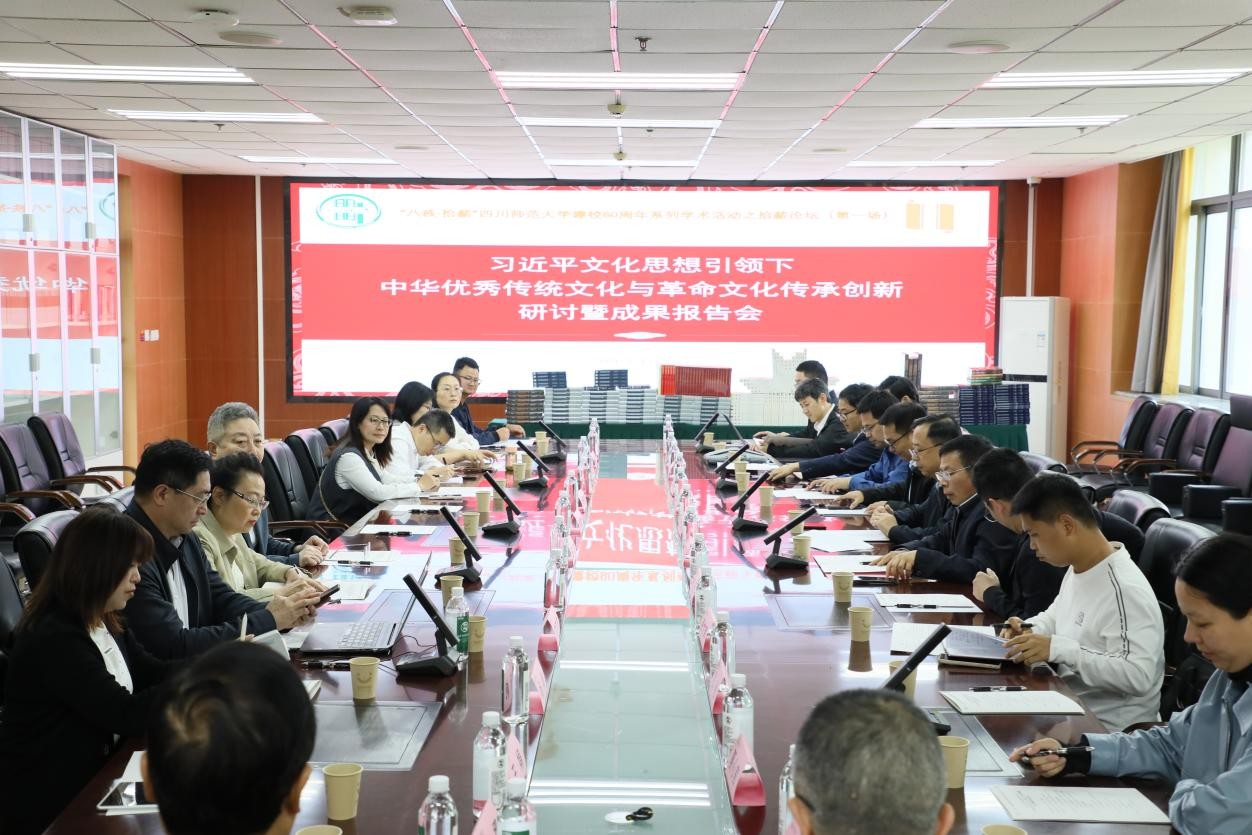4月23日,习近平文化思想引领下的中华优秀传统文化与革命文化传承创新研讨暨成果报告会在我校狮子山校区举行。校党委常委、副校长蒋文涛,省政府参事室(文史研究馆)副主任刘著宇,省委宣传部文化传承发展处副处长可晓锋出席会议并讲话。来自相关领域的30余位领导、专家学者与会。本次会议由我校与四川省政府文史研究馆、习近平文化思想研究中心四川省协同研究基地(四川师范大学)联合主办,中华传统文化学院、人文社科处、马克思主义学院共同承办,是学校建校80周年系列学术活动之“拾薪论坛”的首场活动。