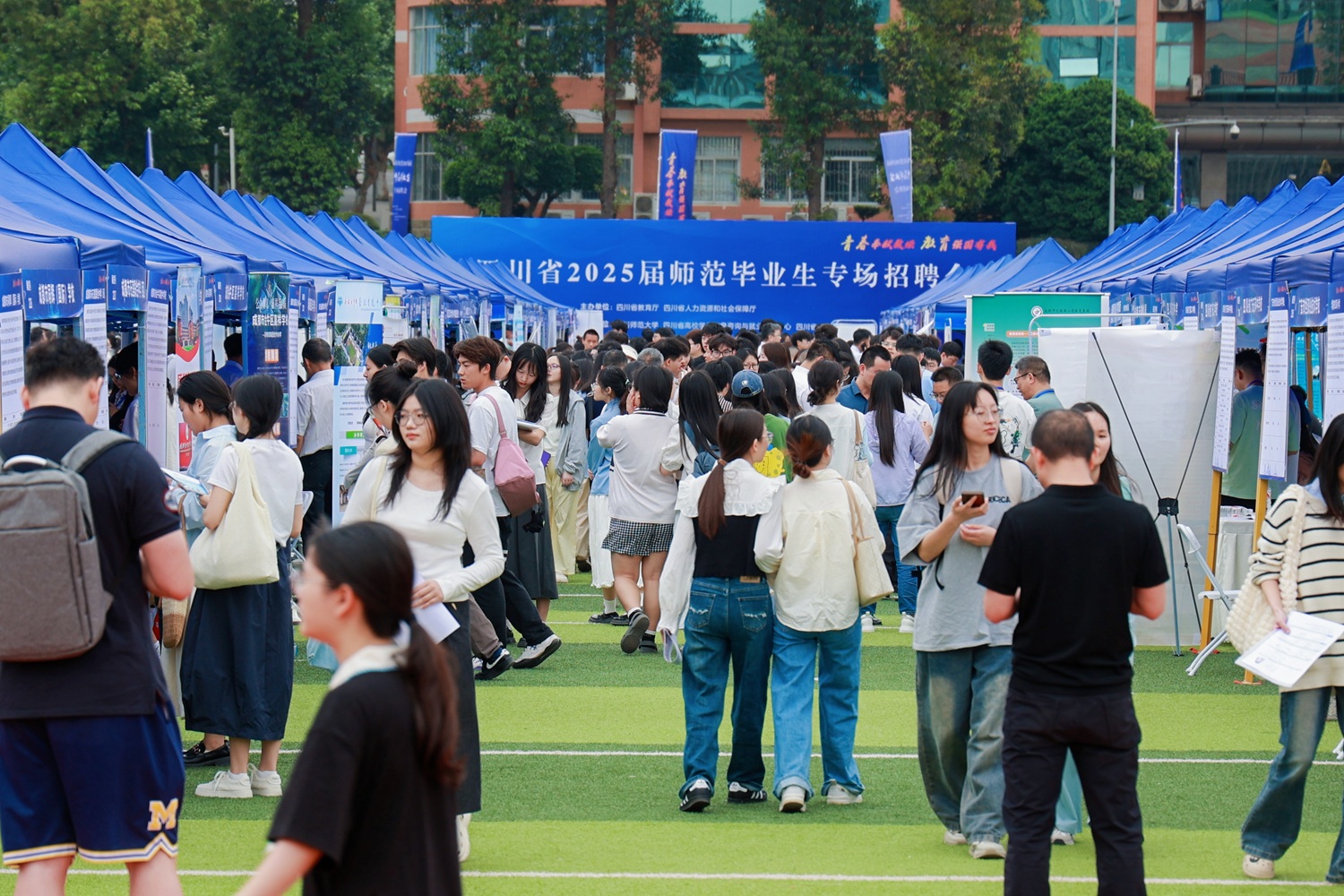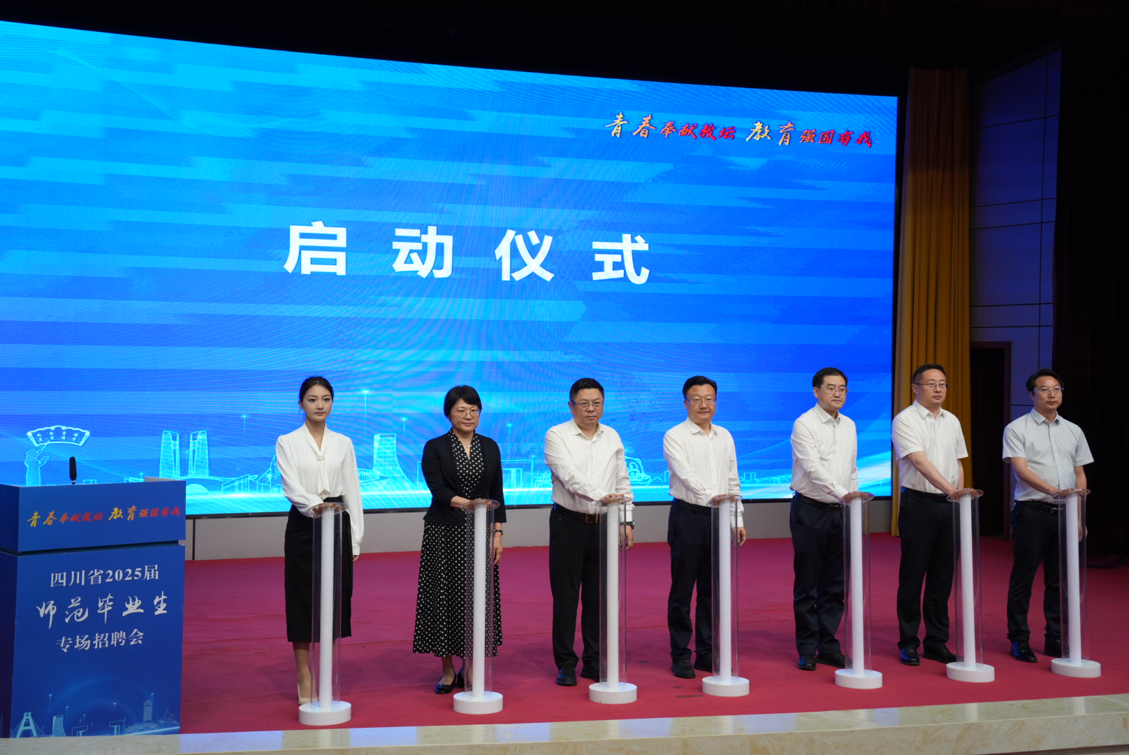 5月10日,由四川省教育厅、四川省人力资源和社会保障厅联合主办,我校和四川省就业指导中心、四川省人才交流中心承办的“青春奉献教坛,教育强国有我”四川省2025届师范毕业生专场招聘会在我校狮子山校区举办。省教育厅党组成员、副厅长冯永刚,省人力资源和社会保障厅党组成员、副厅长刘晓博,校党委书记郭勇、校党委副书记张海东出席活动启动仪式,省教育厅相关处室负责人,省人才交流中心、就业指导中心负责人,21个市(州)教育主管部门负责人和招聘单位代表参加启动仪式,启动仪式由省教育厅教师工作处处长何庆主持。