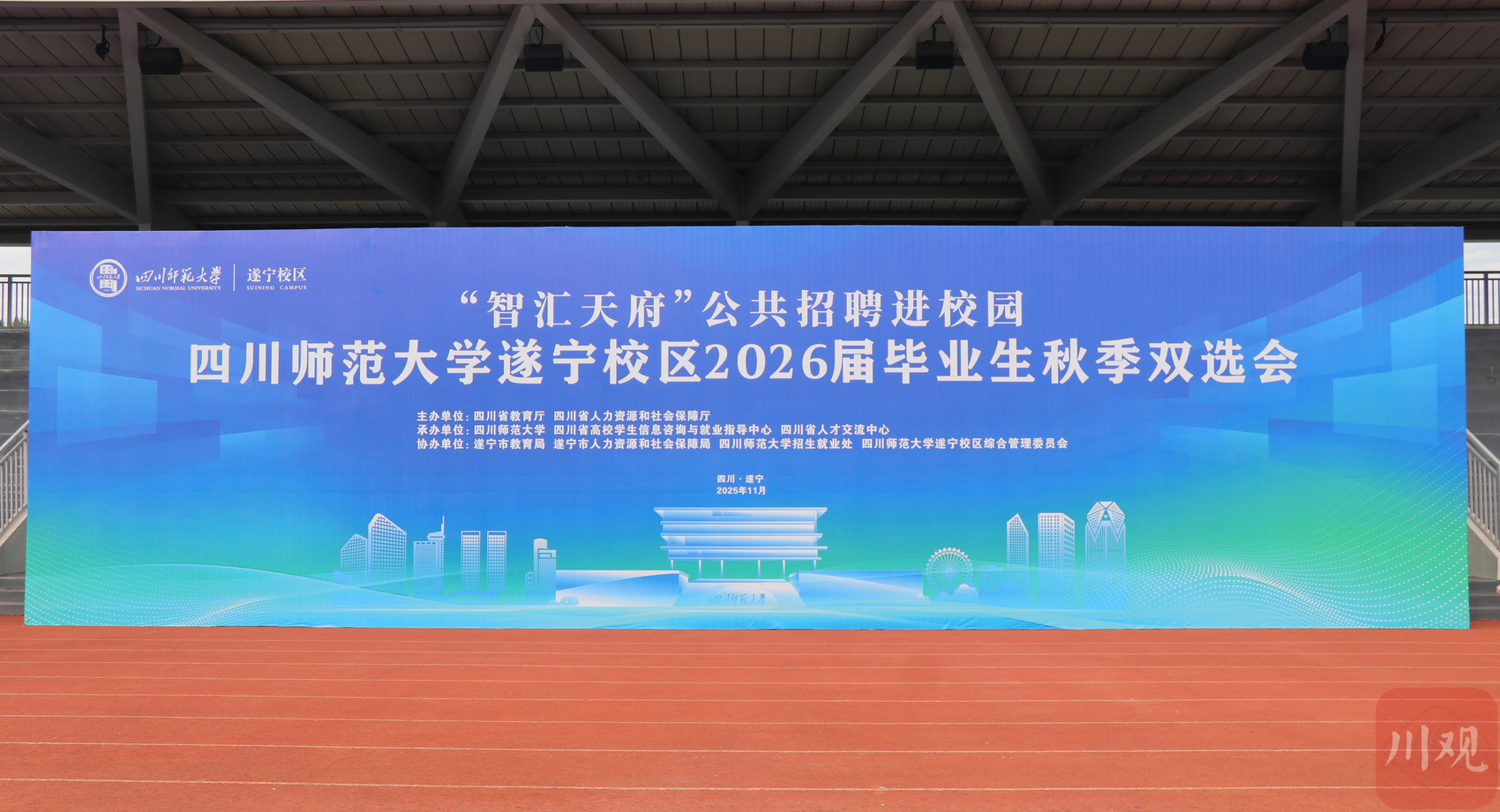 11月8日,“智汇天府”公共招聘进校园活动——四川师范大学遂宁校区2026届毕业生秋季双选会在四川师范大学遂宁校区举行。作为该校区启用后的首届毕业生双选会,活动吸引了200余家优质企事业单位参与,提供岗位近2000个,人才需求总量约5000人。