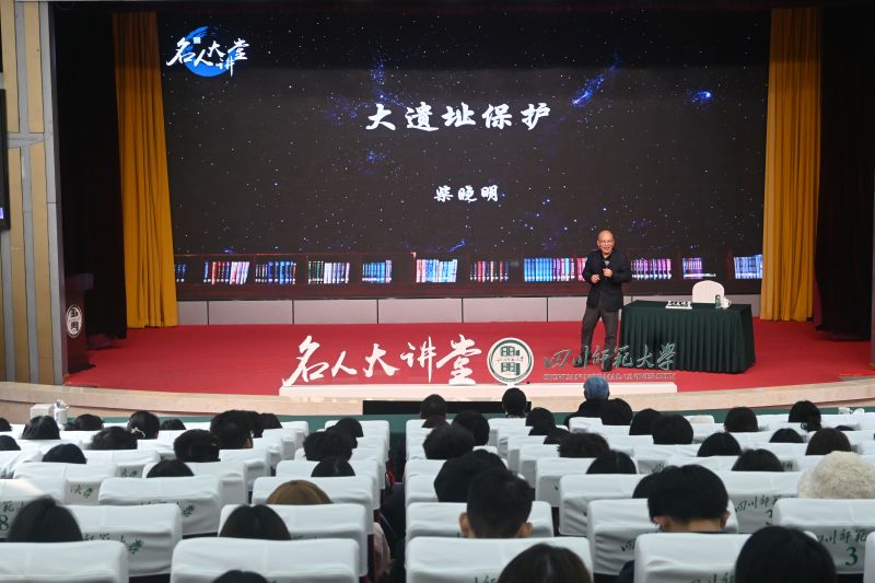 11月28日,2025名人大讲堂“遗产保护”季第四场讲座在我校狮子山校区学术报告厅举行。西安建筑科技大学教授、中国文化遗产研究院原院长柴晓明受邀为我校师生带来题为《大遗址保护》的主题讲座。本次活动由四川省传承发展中华优秀传统文化工作协调组主办,四川日报报业集团(封面新闻、华西都市报)与我校联合承办。校党委常委、副校长郭朝辉出席活动。省委宣传部相关处室负责人、我校党委宣传部负责人及师生代表等200余人共同聆听讲座。